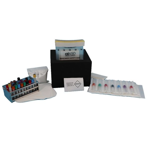 Category B Ambient - 95kPa Medium bags The ambient transport system for blood and urine tube transport includes: medium 95kPa bags,Aqui-Pak™ segmented absorbent pouch, cushioning material, list of contents card, biohazard symbol label, Biological Substance Category B label, and medium transport box Holds up to six tubes.